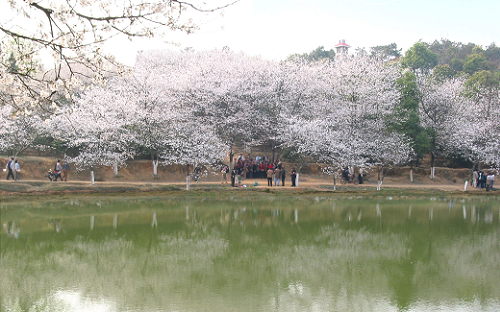 園內(nèi)山明水秀,萬木爭榮,空氣格外清新,適宜于森林療養(yǎng)和空氣療養(yǎng)。園內(nèi)的園林造景別具一格,以三湘景園為代表的人文景園,以櫻花園、珍稀蔭生植物園、木蘭園、桂花園為代表的專類園,雅致大氣,內(nèi)涵豐富。每年3月園內(nèi)近3000株櫻花競相開放,游客絡繹不絕。我園精心舉辦的櫻花生態(tài)文化節(jié)已成為深受廣大市民喜愛的踏春賞花交游的民眾節(jié)日。1992年在公園西部海拔106米的山包上,新建天際閣,高20米,4層,下為正方形,上為六邊形,翹角寶頂,黃色玻璃瓦覆蓋,朱欄畫棟,光彩照人,為南郊新添勝景。