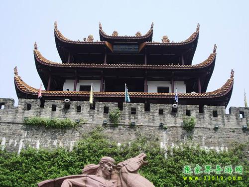 作為楚漢名城,長(zhǎng)沙2000多年前就有寬厚的夯土城垣。明初悉改石基磚砌,外繞護(hù)城河。辛亥革命后拆城墻修環(huán)城公路,僅地勢(shì)最高的天心閣一段作為勝跡保留。時(shí)人有聯(lián)曰:“閣上九霄迎日月,城留一角看江山”。這段古城墻現(xiàn)長(zhǎng)387.8米,高13.4米,頂面寬6.1米。分內(nèi)外兩城,外城又筑南北兩月城,內(nèi)有藏兵洞、炮洞等,并留清代鐵炮4門。城墻上尚存的斑斑彈痕,向人們?cè)V說(shuō)著城墻下的一段悲壯歲月:1852年9月10日,太平軍抵長(zhǎng)沙南門外。西王蕭朝貴身先士卒,躍馬揮劍,在前沿指揮攻城,不幸于9月12日中炮犧牲。以此為背景,《太平軍魂》群像雕塑1993年10月在天心閣古城墻下揭幕,向世界展示了一曲農(nóng)民革命戰(zhàn)爭(zhēng)的悲壯頌歌。