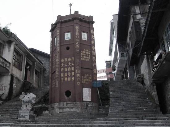 清嘉慶七年(1802),這里建成了一座石堡城,設(shè)東西南北4門,門樓上各有4座炮臺,420個垛口??谷諔?zhàn)爭時期,蔣介石的殘兵敗獎經(jīng)此地逃往四川。解放戰(zhàn)爭時期,劉鄧大軍也是從這里推進大西南。解放后,城墻城門雖被毀壞,但翠翠島、吊腳樓、石板街依然保存完整。