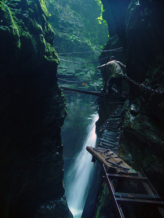 坐龍峽,經(jīng)由300萬年大自然的風(fēng)吹、水蝕而成,一直隱逸于湘西茫茫十萬群山之中。它長約3500米,最大高差達300余米;寬處不足丈余,窄處僅容一人通過;谷內(nèi)絕壁縱疊,溪瀑橫懸,崖樹斜逸,異草遍被。