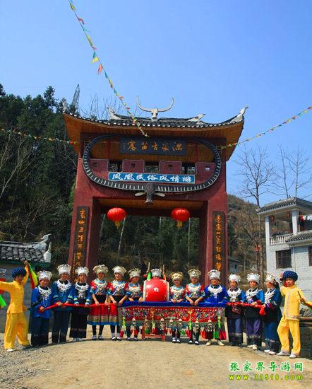 滿家古苗寨位于吉首到鳳凰的必經(jīng)之地吉信鎮(zhèn),距離鳳凰古城26公里,209國(guó)道穿村而過,交通非常便利,北距乾州古城20公里,南距鳳凰古城26公里,滿家人淳樸善良,熱情好客,滿家風(fēng)情古樸,濃郁,滿家原生態(tài)的歌舞習(xí)俗,節(jié)慶及深厚的傳統(tǒng)文化保留完整,傳承自今。