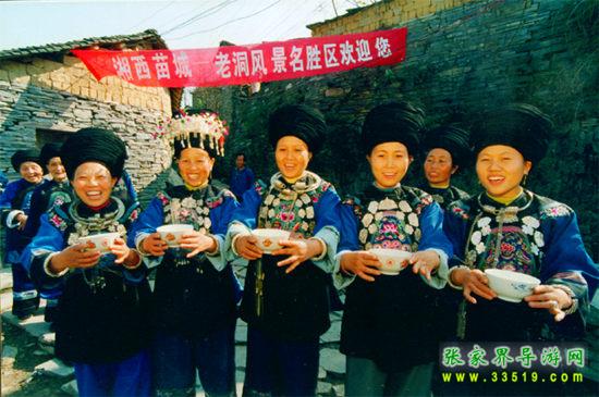 三、訪苗寨:穿越神工鬼斧的天然石洞,進(jìn)入老洞苗寨。鑼鼓喧天,笙歌陣陣,熱情的村民唱起了祝酒歌。品迎客酒,吃農(nóng)家飯,參觀列入歷史文化名村的古老獨(dú)特的石頭風(fēng)格建筑,觀看苗寨為您安排的互動(dòng)節(jié)目。下午四點(diǎn)乘老洞專車返回鳳凰古城,開始新的愉快旅程。