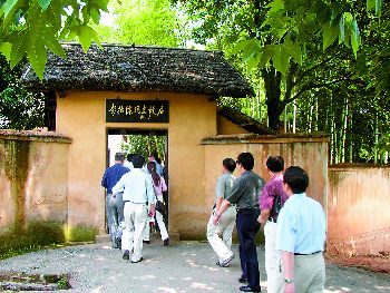 在彭總故居西頭的三間橫屋里,是彭總光輝一生的輔助陳列室。這里陳列著60多張圖片和50多件文物,其中有彭總在廬山會議期間呈送的“萬言書”復(fù)制件。這些照片和文物向人們講述著彭總光輝壯烈的一生。