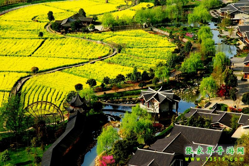 生態(tài)廣場共種植了近1600余株喬灌木,草皮、綠化工程共占地近3萬平方米,是廣場總面積的61%。香樟、桂花、紫薇等四季常青的樹木爭芳斗艷,是人們休閑時的綠色伴侶。田園風光與綠化景觀交相輝映,隔游道相望,農(nóng)田近2萬平方米,集中在廣場東南部,水稻、玉米及各類果蔬與農(nóng)舍、家禽、和平鴿的融合,串連著鄉(xiāng)村小路,讓鄉(xiāng)野韻味達到了極致。水車、石磨,還有蒼勁的風水樹仿佛將人們帶入了一個古老的世界,石拱橋、鐵索橋與斗拱建筑渾然一體,既有江南水鄉(xiāng)的柔美,又不失土家特色。