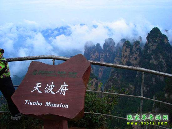 天波府位于楊家界景區(qū),數(shù)十座絕壁,交纏錯落,參差不齊,場面悲壯,若殘垣斷壘,令人不由感嘆大自然的威力及滄海桑田的變幻。相傳此乃楊家“天波府”的遺址。據(jù)山西大學歷史系副教授周征松考證,景區(qū)名稱楊家界(還有上面提到的“天波府”、“宗保峰”、“六郎灣”等)都是為紀念楊家將而命名的。住在這楊家界的楊氏宗族,原來都是歷史楊家將的后代,由北到南,由江西到湖南、到湘西并經過歷代演變,遷移跋涉而來的。