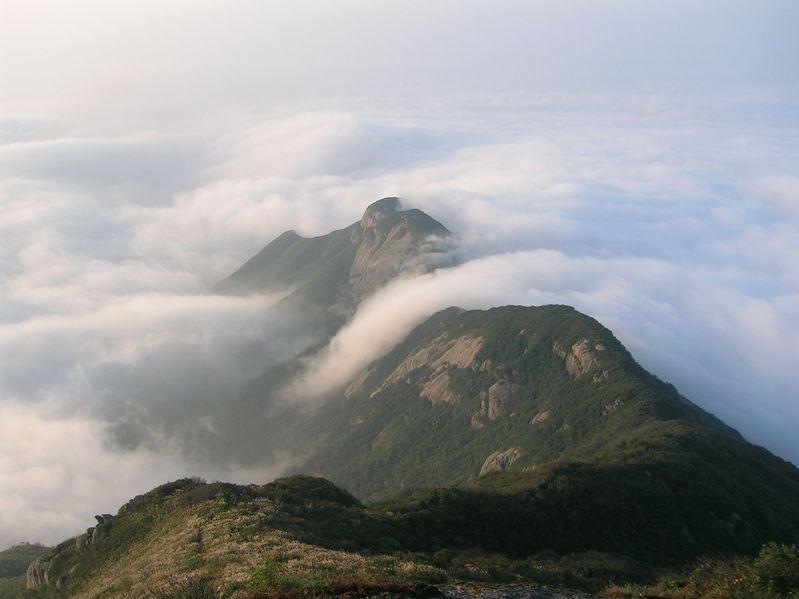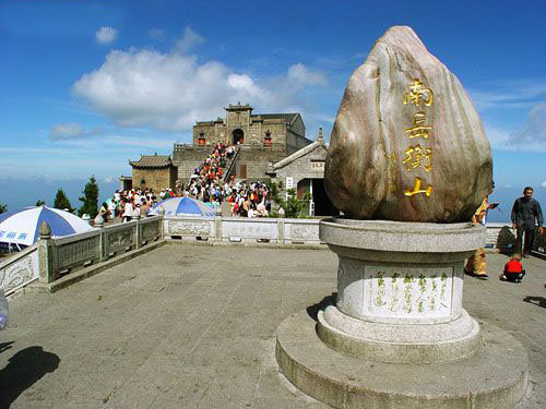 山巔祝融峰,海拔1290米,由于煙云的烘托和群峰的疊襯,構成了"萬丈祝融拔地起,欲見不見輕煙里"的雄姿。登臨其上,可見北面洞庭湖煙波渺渺,若隱若現,南面群峰羅列,如障如屏,水面湘江逶迤,宛如玉帶,西面雪峰山頂,銀濤翻騰,萬千景象,盡收眼底。