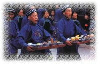 指著圓符,不久,蒙面者便神魂入定;似有神附體,慢慢地全身抖動(dòng)起來,手舞足蹈,這就是已“進(jìn)入陰間”。據(jù)傳過陰之人,雖蒙頭蓋面,也能辨別方向,隨法師的指使行事,陰間之事能有問必答,人們所要了解之事,也都從他們那里得到答復(fù),并可以探求禳解之法。法師用法術(shù)指使他們?nèi)プ龈鳂邮虑?。到一定時(shí)間,法師用咒語報(bào)他們招回,他們?cè)诜◣煹闹甘鞠拢懤m(xù)返回陽世清醒過來。若有個(gè)別不能返回,法師則加倍對(duì)他們施法,用刀指向他,并念咒畫符,強(qiáng)令返回。過陰之人蘇醒后,法師揭開頭蓋,這時(shí)個(gè)個(gè)面色慘白,目光遲鈍,如害一場(chǎng)大病。法師再施以復(fù)原之術(shù),使之慢慢復(fù)原。他們復(fù)原后,完全忘記陰間的事情。
