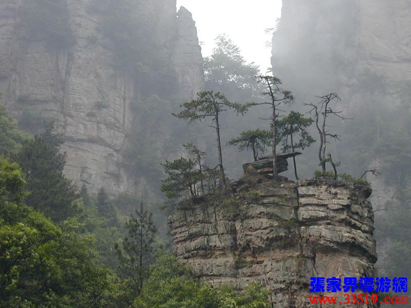 (武陵松)張家界武陵源由于發(fā)現(xiàn)很遲,原始曠古的植被地貌才得以完好保存。這里是一座巨大的生物寶庫,被譽(yù)為自然博物館和天然植物園。植物學(xué)家認(rèn)定張家界處于亞熱帶常綠闊葉林的中心位置,保留了長江流域古生代植物群落的原始風(fēng)貌。這里森林覆蓋率達(dá)85%,僅木本植物達(dá)751種。這里保存了大量世界珍稀植物,如被稱為“活化石”的珙桐、銀杏,以及諸如伯樂樹、香果樹、白豆杉、紅榧等。而面積最大、造型最奇的數(shù)武陵松。大家看,張家界每一座石峰上,幾乎都長滿了盤根錯節(jié)的松樹。“蒼勁虬曲掛絕壁,松枝搖曳三千峰”。大詩人胡茄對武陵奇峰作了最為形象的評價(jià):“桂林醉人是漓江清,峨嵋風(fēng)流是金頂云,華山險(xiǎn)在倚天看,廬山美在泉中聽,不及湘西武陵源,數(shù)千奇峰纏綠云,石上長森林!”這石頭上的森林就是武陵松!方志專家陳自文先生有武陵松詩:“武陵源里數(shù)千峰,絕頂青松各一叢。咬石嗟牙根自由,承天抖擻腰難躬。”如果要說武陵松的特點(diǎn),這就是最好的人格化的注腳。