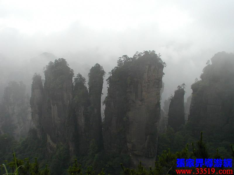 (山頂環(huán)覽線:五指峰、前花園、黑樅垴)朋友們!這里的每一座巖峰都是一件古老的藝術(shù)品,每一座巖峰都隱藏著大自然的無窮奧秘。面對如此壯美雄奇、氣象萬千的砂巖峰林風(fēng)光,幾年前,一位來自東北的女作家,就站在黃石寨(黃獅寨)上感嘆道:看了張家界的風(fēng)光,覺得真可以死了。接下來她又說,看了張家界的風(fēng)光,覺得更有理由好好活了。兩句話看起來前后矛盾,其實(shí)不然:前一句是說能見一到像張家界這樣奇美的風(fēng)光,此生足矣;后一句是說人生是如此美好,理應(yīng)更加珍愛生命。大家說對不對?