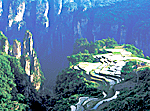 天門山索道線路斜長 7455 米 ,它以張家界市中心的城市花園為起點,直達天門山頂的原始空中...