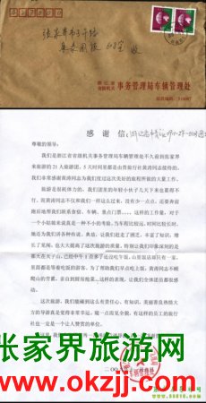 浙江省省級機關(guān)事務(wù)管理局車輛管理處致張家界康泰國旅導(dǎo)游黃濤感謝信
