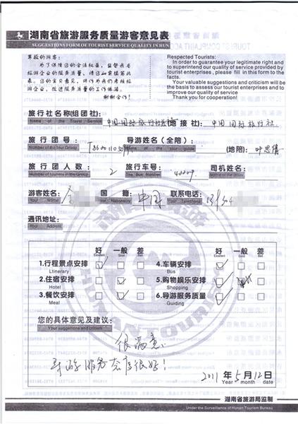 2011年5月12日全先生一行2人:很滿意!導(dǎo)游服務(wù)態(tài)度很好!