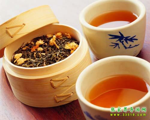 武陵源的名茶,天子山有去霧茶、毛鋒,索溪峪有毛尖茶,張家界有“青巖茗翠”與“龍蝦花茶”均被正式列為全國(guó)名茶,并由國(guó)家工商行政管理局頒發(fā)了金杯獎(jiǎng)。